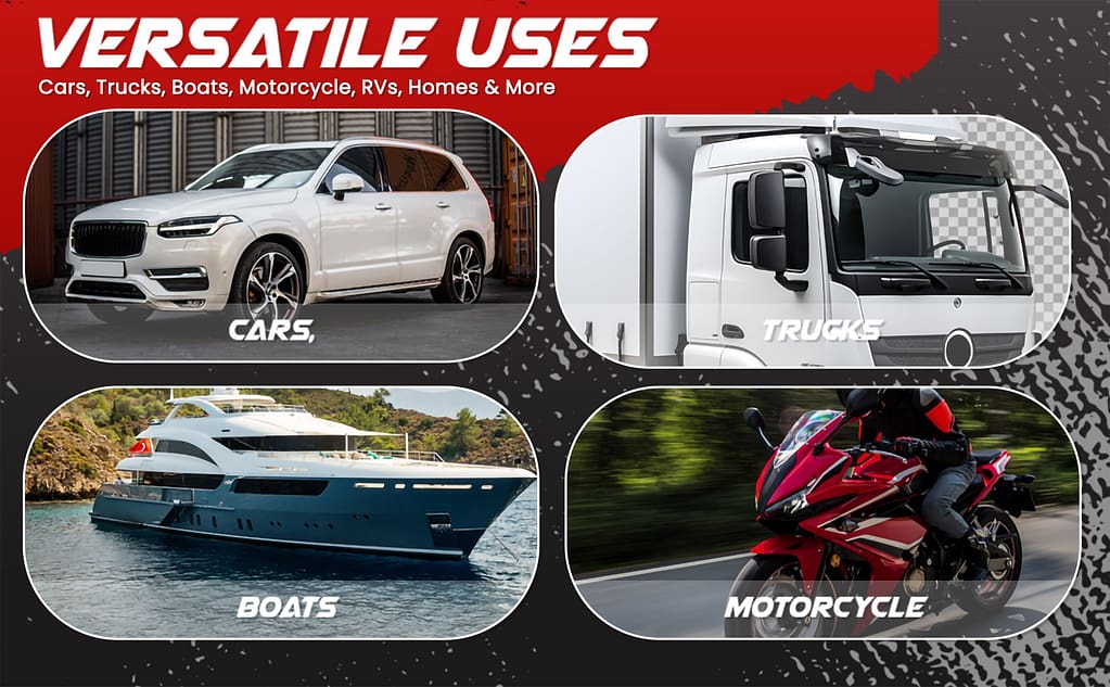 Restore your car or motorcycle's pristine appearance by effortlessly removing water spots and other contaminants from paint, chrome, aluminum, mirrors, wheels, and trim.